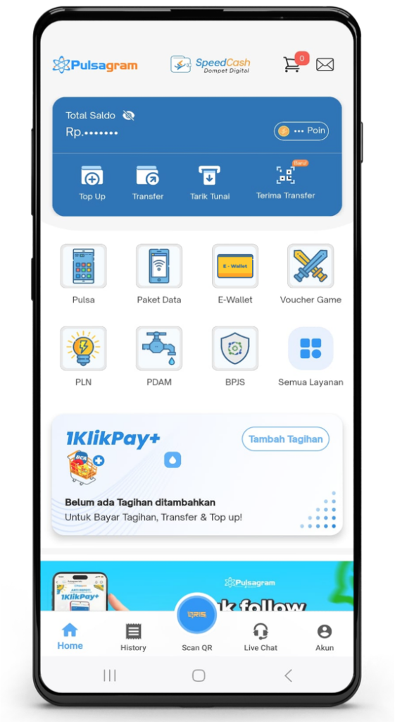 Pulsa, paket data, token listrik, e-wallet, voucher game, hingga berbagai tagihan harian—semuanya bisa kamu selesaikan cukup dari satu aplikasi. Praktis, efisien, tanpa ribet pindah platform.